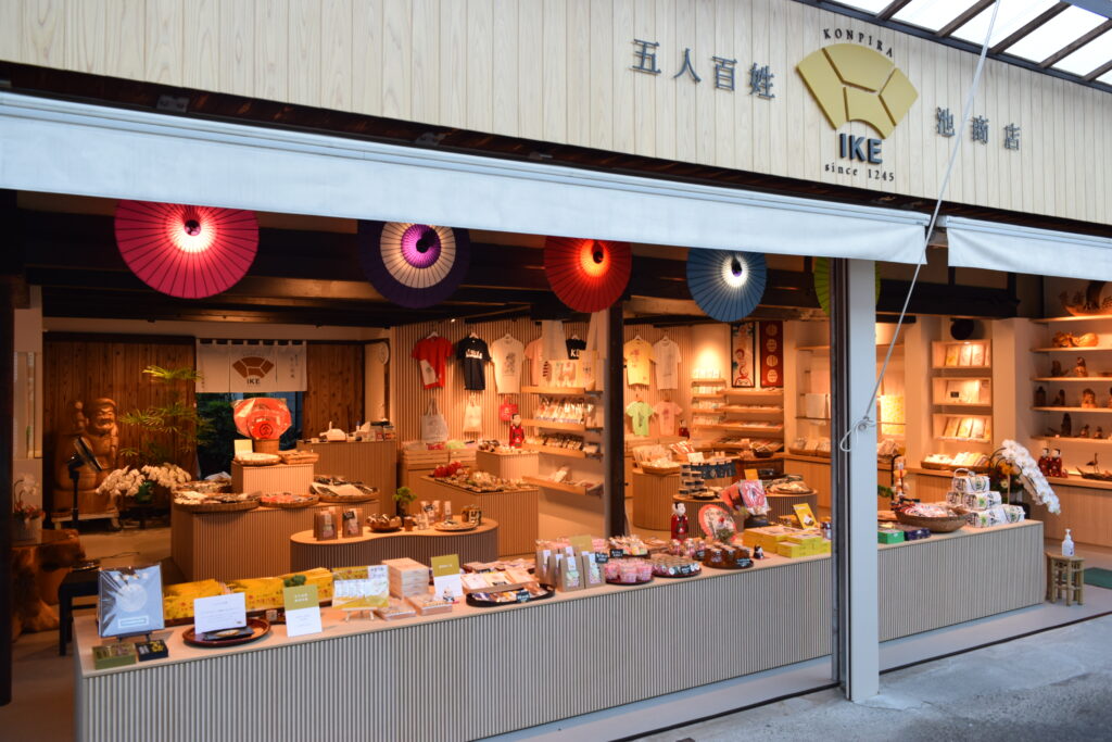 Ike Syouten is the candy shop run by the Ike family, one of five families historically connected to supporting the Kompira Shrine. The shop preserves traditional confectionery techniques dating back over 800 years.